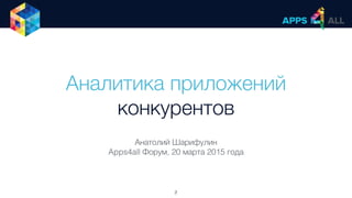Документ содержит обсуждение аналитики мобильных приложений и конкурентов, при этом подчеркивается важность сбора данных о рынке и анализе приложений. Автор предлагает два варианта решения проблемы: собрать информацию вручную с использованием множества инструментов или создать собственный инструмент для автоматизации анализа. Также упоминается платформа appfollow.ru, которая предлагает различные функции для аналитики приложений и отзывов.