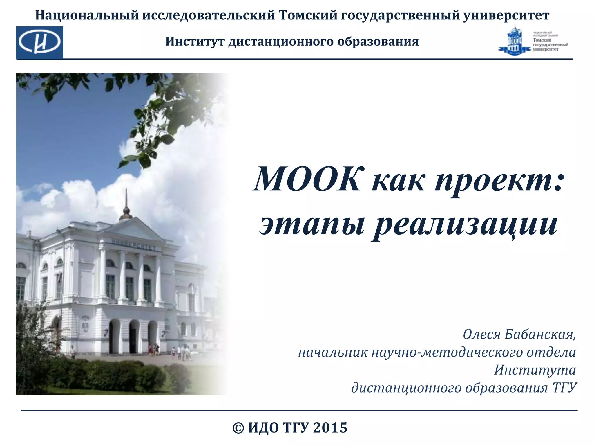 Документ описывает проект MOOC (массовый открытый онлайн-курс) в ТГУ и его реализацию, включая этапы планирования, разработки, продвижения и обучения. В нем детализированы задачи на каждом этапе, такие как выбор платформы, составление курса, подготовка материалов и рекламных стратегий. Также охватываются аспекты методического и технического сопровождения учебного процесса.