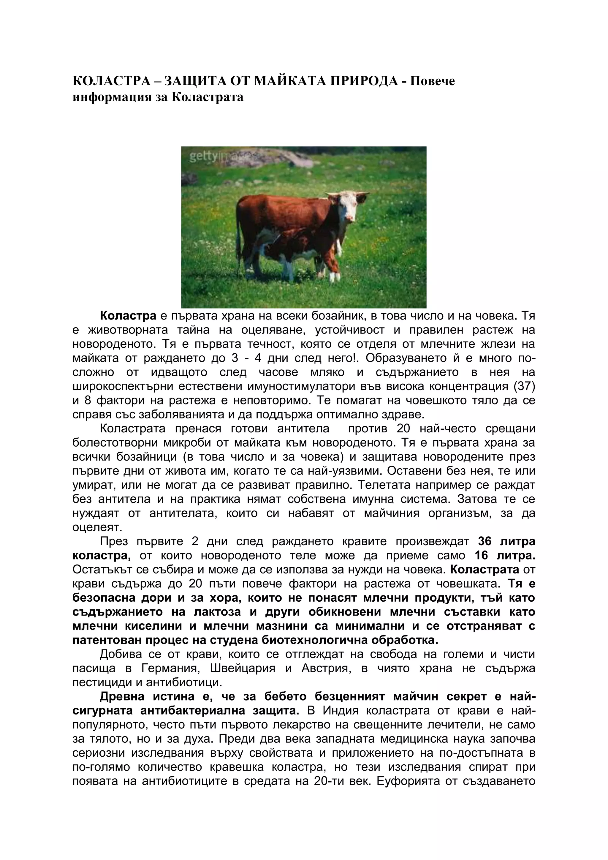 сигурната антибактериална защита. В Индия коластрата от крави е най-