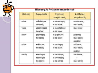 Συγκριτικός Σχετικός υπερθετικόςΑπόλυτος υπερθετικός