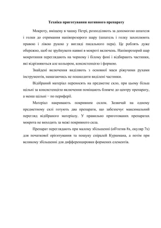 перегляд відібраного матеріалу. У правильно приготованих препаратах