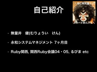 自己紹介 • 無量井 健(むりょうい けん) • 永和システムマネジメント