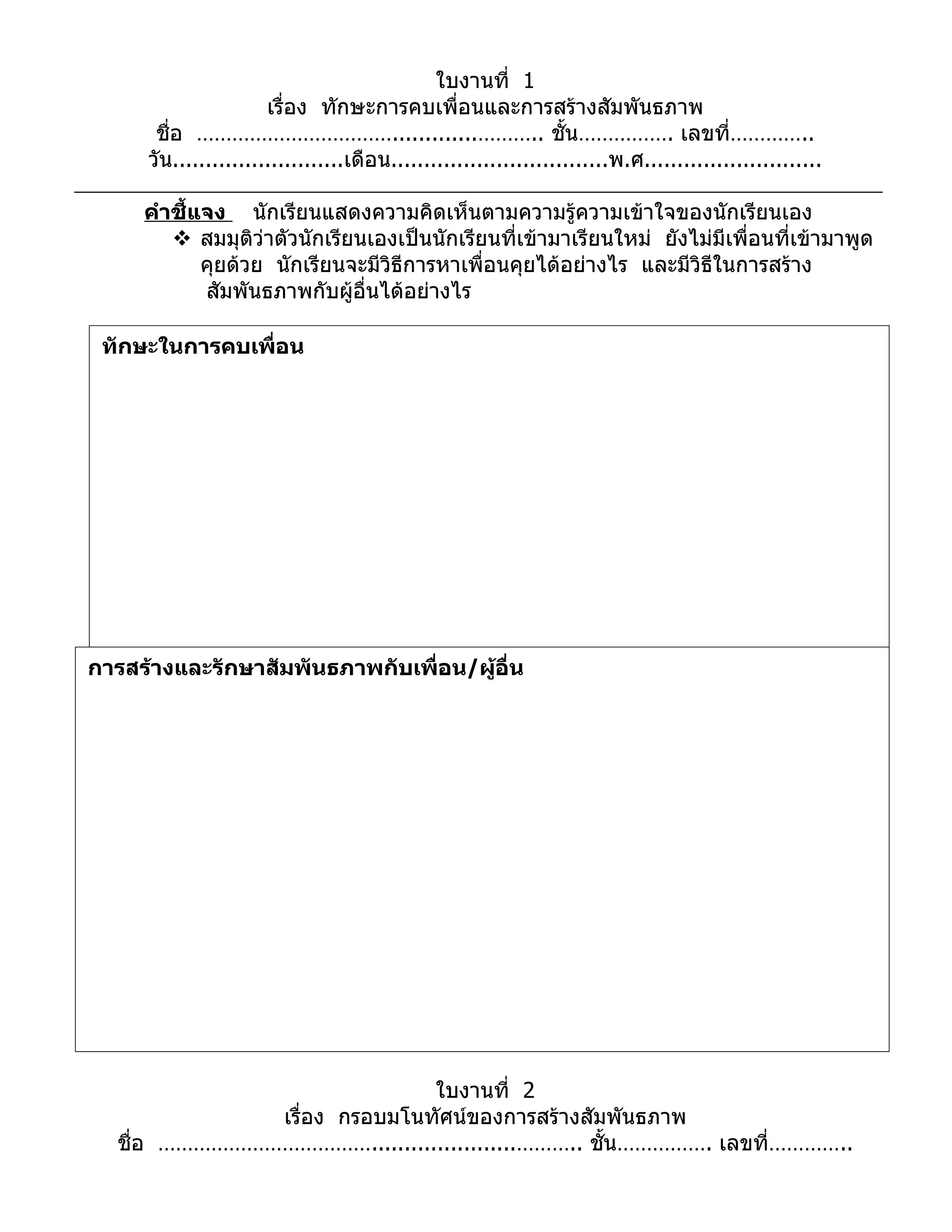 แผนการจัดการเรียนรู้ที่ 6 สุข ม.2 Similar to ใบงานเรื่องสัมพันธภาพ