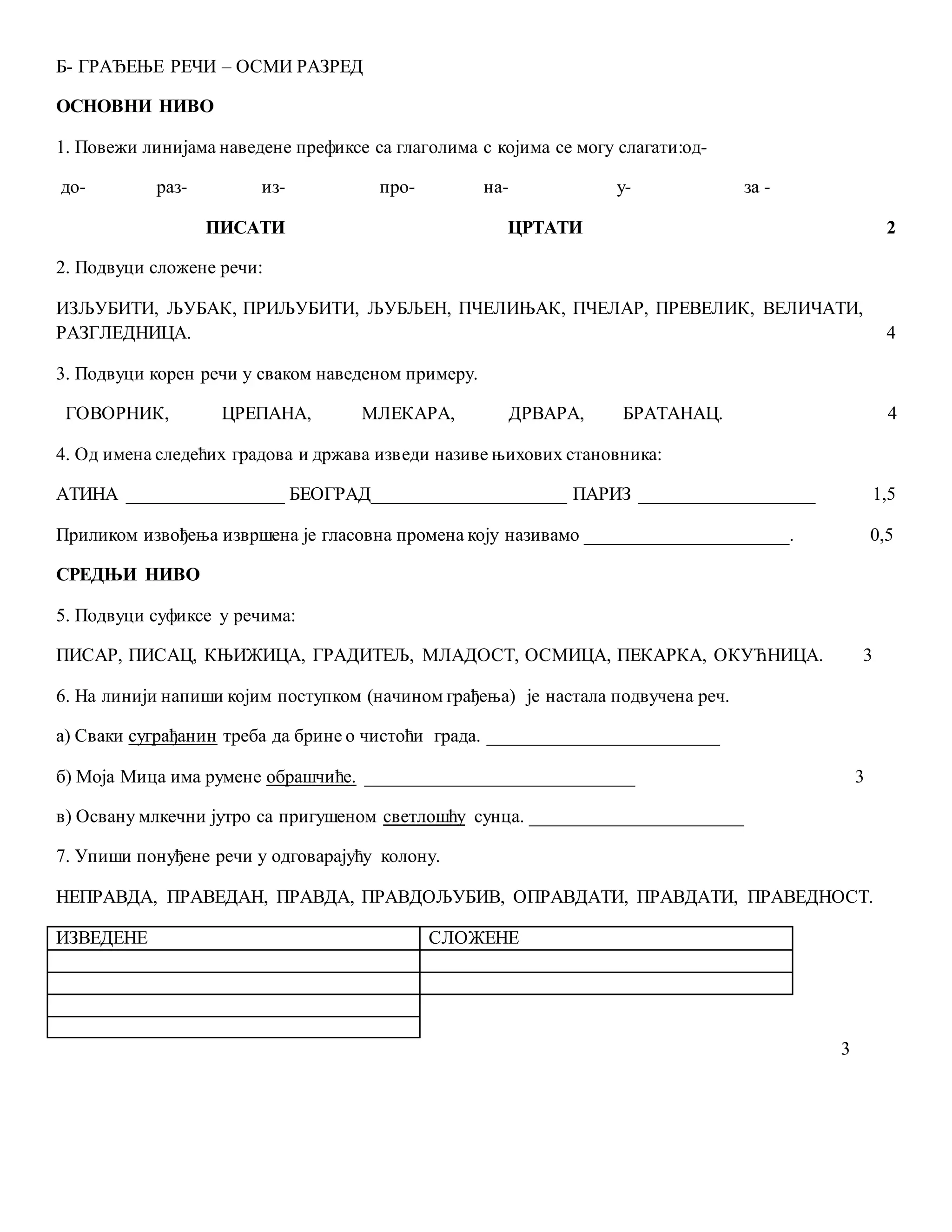 Б- ГРАЂЕЊЕ РЕЧИ– ОСМИ РАЗРЕД