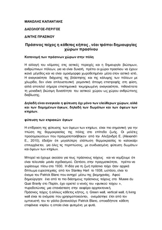 ανθρώπινων πόλεων, για να είναι δυνατή, πρέπει οι χώροι πρασίνου να έχουν