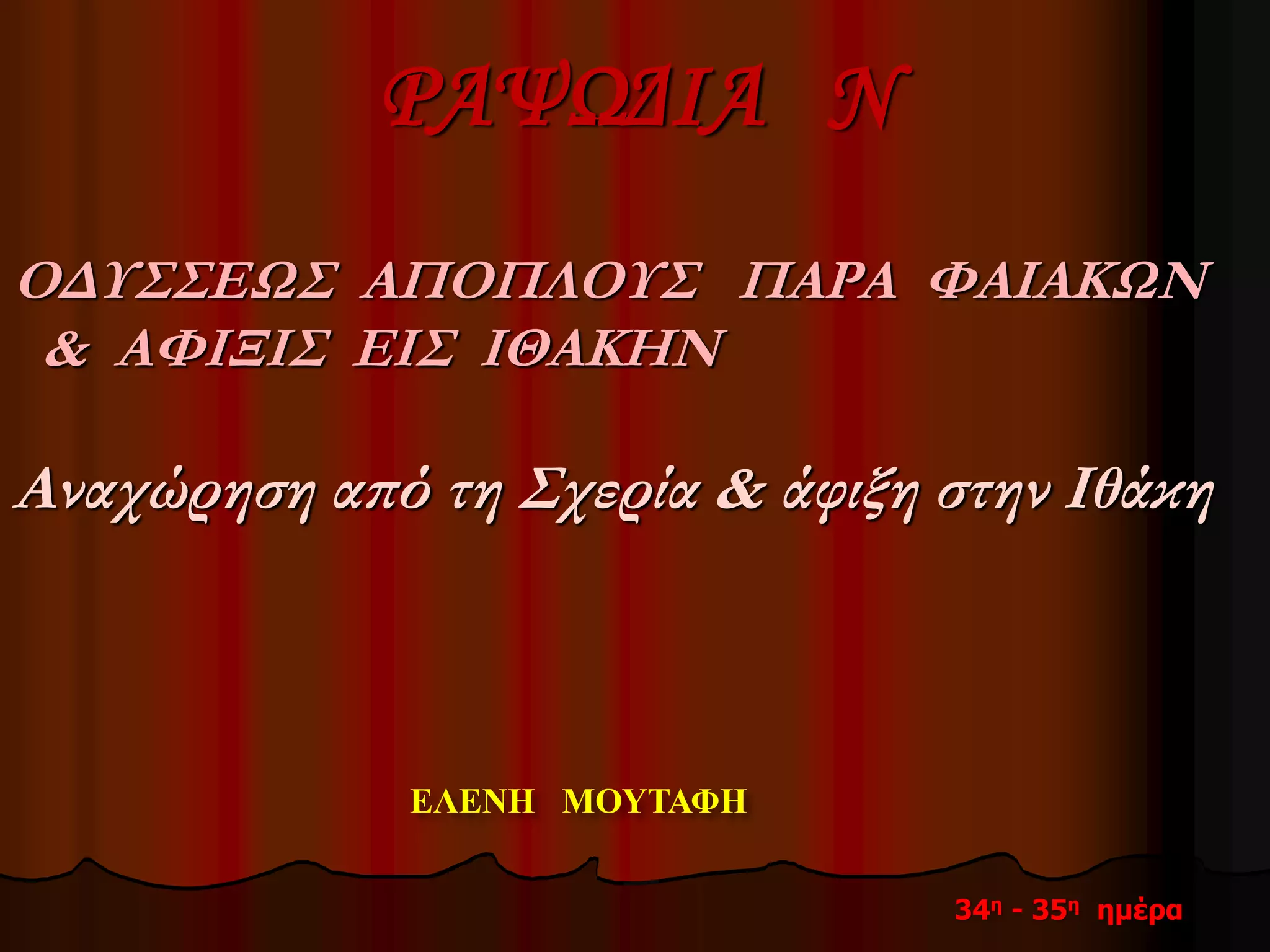 VIDEO ΟΔΥΣΣΕΙΑ N - ΟΔΥΣΣΕΩΣ ΑΠΟΠΛΟΥΣ ΠΑΡΑ ΦΑΙΑΚΩΝ & ΑΦΙΞΙΣ ΕΙΣ ΙΘΑΚΗΝ
