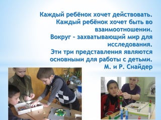 Документ описывает проект по формированию проектных умений у учащихся начальных классов с использованием набора LEGO. В рамках проекта предлагаются различные темы для конструирования, такие как аквариум, военная техника и космос, а также этапы работы над проектом, включая введение, строительство и ролевые игры. Основной акцент сделан на активное взаимодействие детей и их вовлеченность в процесс обучения.