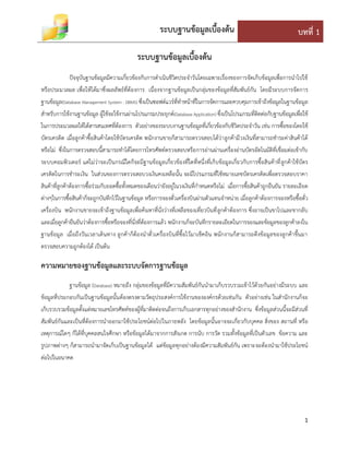 ระบบฐานข้อมูลเบื้องต้น บทที่ 1