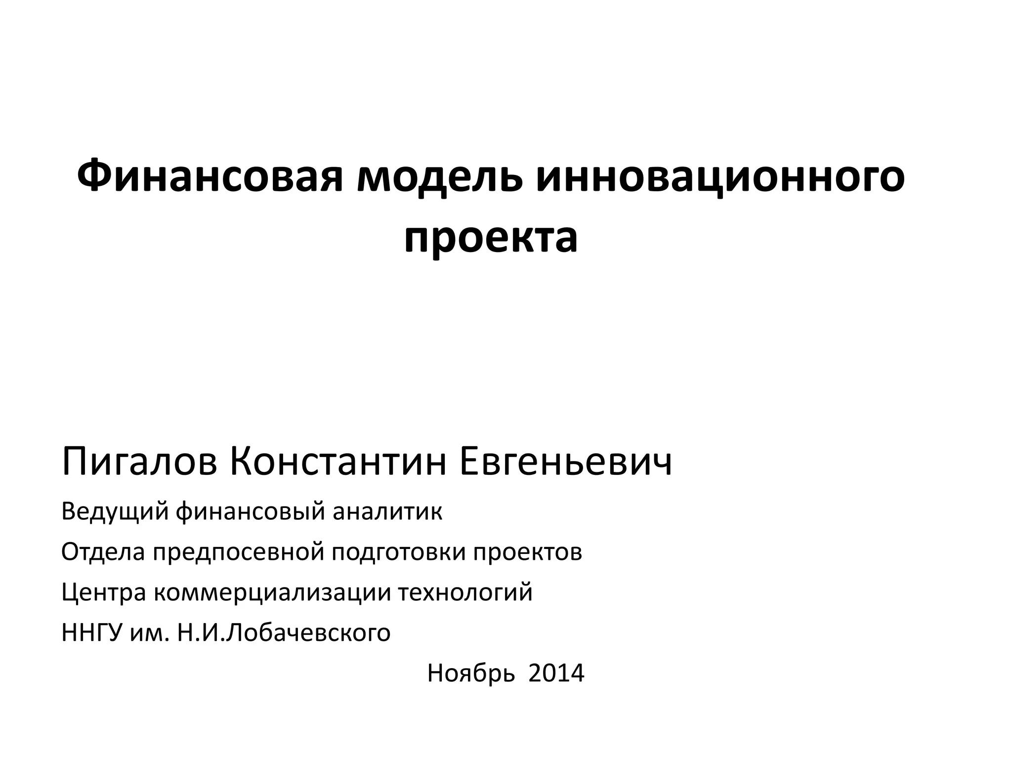 Документ представляет финансовую модель инновационного проекта, охватывающую прогноз денежных потоков на 5 лет и потребность в внешнем финансировании. Включает этапы разработки, ключевые операционные и финансовые показатели, а также расчеты инвестиционной привлекательности для потенциальных инвесторов. Проект нацелен на коммерциализацию технологий с различными бизнес-моделями и предполагает детальное планирование расходов и доходов.