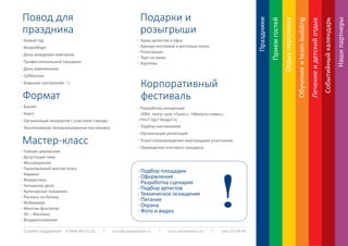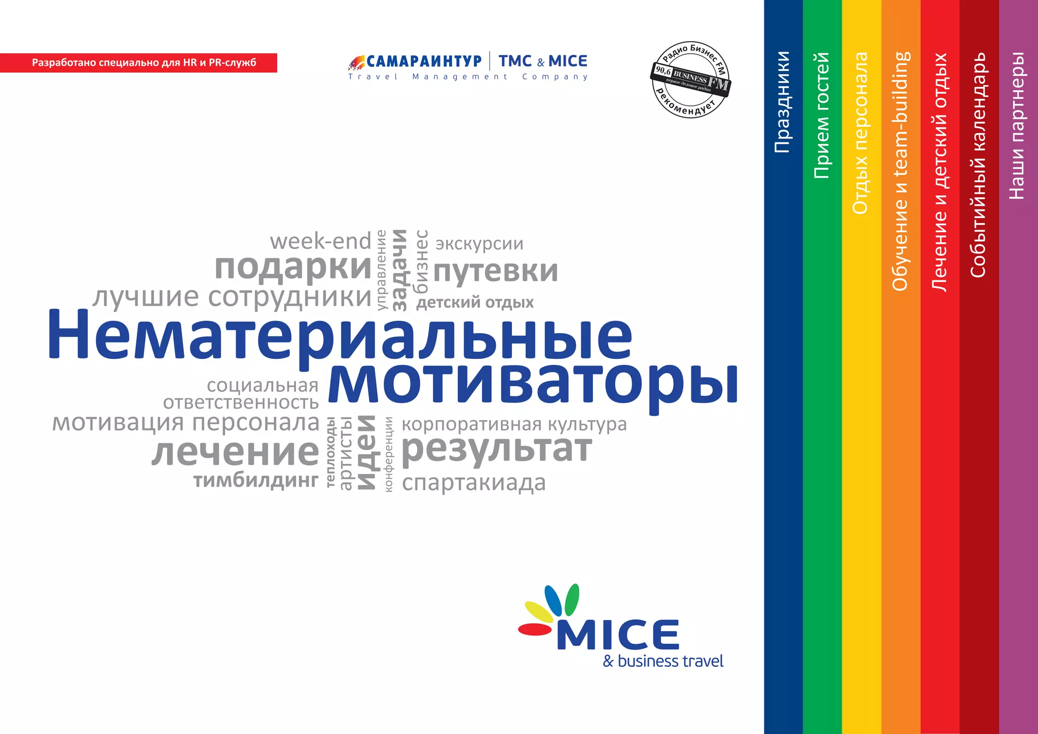 Данный каталог разработан для HR и PR служб с целью найти новые решения по нематериальной мотивации сотрудников компании и партнеров.
