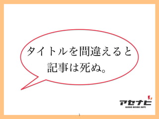 ”ASEANで働くを近くする”ウェブマガジン「アセナビ」(asenavi.com)の編集会議にて使用したスライドです。 主に初心者向けのタイトル付けについての説明をしました。