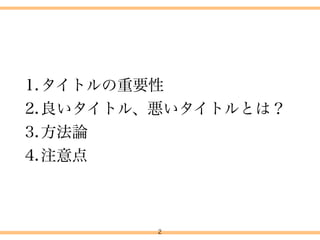 1.タイトルの重要性 2.良いタイトル、悪いタイトルとは? 3.方法論 4.注意点 10 4.タイトル付けについて