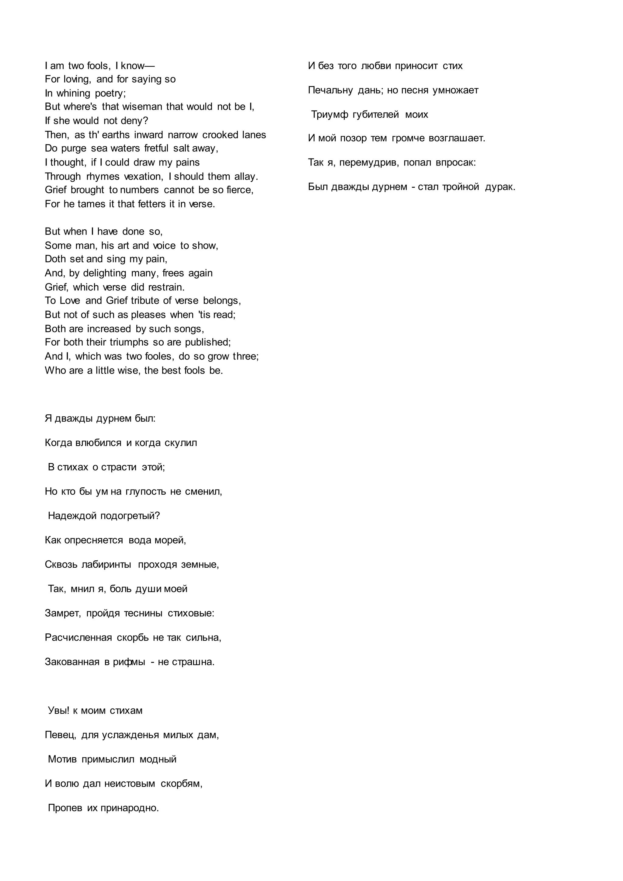 John Donne's poem "The Triple Fool" explores the complex emotions of love and grief through creative imagery and paradoxical statements. The speaker expresses how writing poetry allows him to process his pain, but then others may perform his verses and expose his private suffering to a wider audience. Donne employs an unconventional rhyme scheme and enjambment to create a meditative, speculative tone. While the poem at first suggests poetry can contain grief, Donne then contradicts this by noting how published works take on lives of their own, revealing the speaker's foolishness in exposing his emotions.