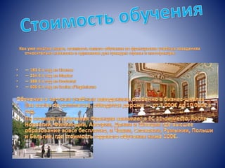Питание студента в месяц оценивается в 250-300€, с доступом к бюджетным студенческим столовым. Студенты также могут воспользоваться скидками на транспорт, достигающими 25-50%, включая дисконтные карты для поездов и городского транспорта. Дополнительно, студенты имеют преимущества при посещении музеев, кинотеатров и других культурных мероприятий.