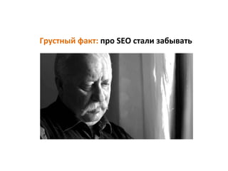 Документ обсуждает важность поискового продвижения (SEO) для бизнеса, подчеркивая, что в долгосрочной перспективе SEO может быть более выгодным по сравнению с контекстной рекламой. Приводятся ключевые рекомендации, такие как качественная внутренняя оптимизация, создание уникального контента и необходимость комплексного подхода к продвижению. Также отмечены недостатки использования одностраничных лэндингов и необходимость диверсификации источников трафика.