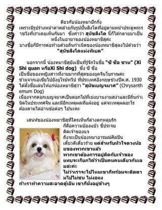 ได ้ตั้งชื่อเล่นให ้แก่น้องหมาชิสุว่า “สุนัขเบญจมาศ” (Chrysanth