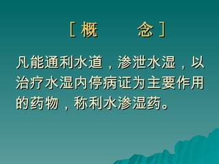 本文讨论了利水渗湿药的概念、性能功效和适应证,包括利水消肿药、利尿通淋药和利湿退黄药的分类及其主要成分。文中详细介绍了多种药物的来源、性味、功效、应用及用法用量。同时提供了使用注意事项,强调了在使用过程中的禁忌和配伍建议。