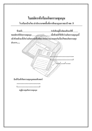 ใบสมัครเขาเรียนกิจกรรมชุมนุม
