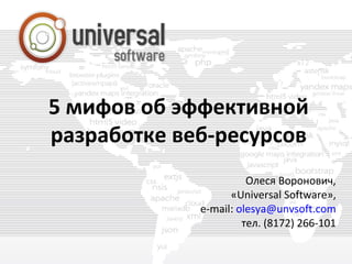 Документ развенчивает пять мифов об эффективной разработке веб-ресурсов, включая заблуждения о точности технического задания и поэтапной разработке. Приводятся статистические данные о реальном использовании функций и стоимости проектов, а также обсуждается важность гибкости в подходах к разработке. В завершение упоминается методология Agile и ее принципы, подчеркивающие важность взаимодействия с клиентом и готовность к изменениям.