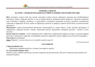 Цілі: розширити знання учнів про цілющі властивості деяких рослин, формувати уявлення про антибактеріальні