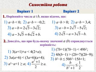 11.. Порiвняйте числа a i b, якщо вiдомо, що:
