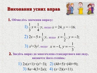 2.2. Зведiть вираз до многочлена стандартного вигляду,