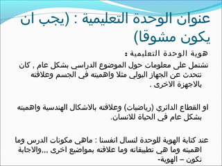 يتناول الوثيقة الوحدة التعليمية حول الهوية وأهميتها في التعليم، مع التركيز على مكونات الجهاز البولي وتطبيقاته وأهميته في حياة الإنسان. يتضمن الدرس منهجية لتنفيذ الأنشطة التعليمية وتقييمها، مع توضيح مصادر ووظائف المعلومات المطلوبة للطلاب. كما يعرض أهداف الوحدة التعليمية وكيفية تقسيم الحصص لتحقيق الأهداف الفرعية.