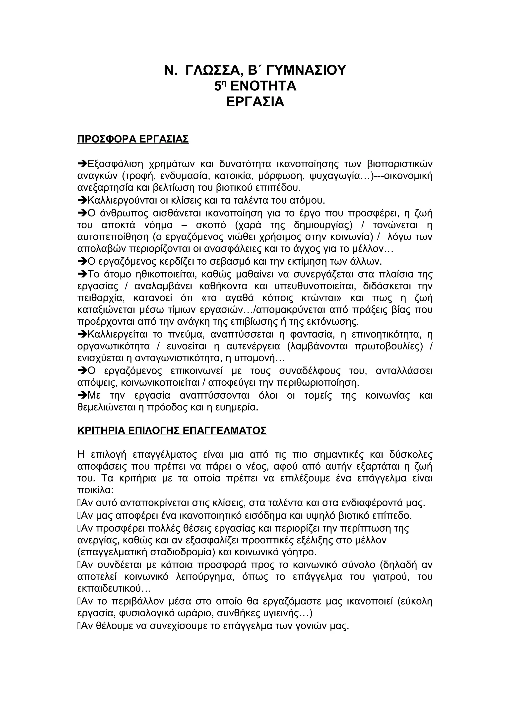 του. Τα κριτήρια με τα οποία πρέπει να επιλέξουμε ένα επάγγελμα είναι