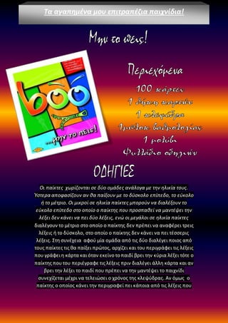 λέξεις. Στη συνέχεια αφού μία ομάδα από τις δύο διαλέγει ποιος από