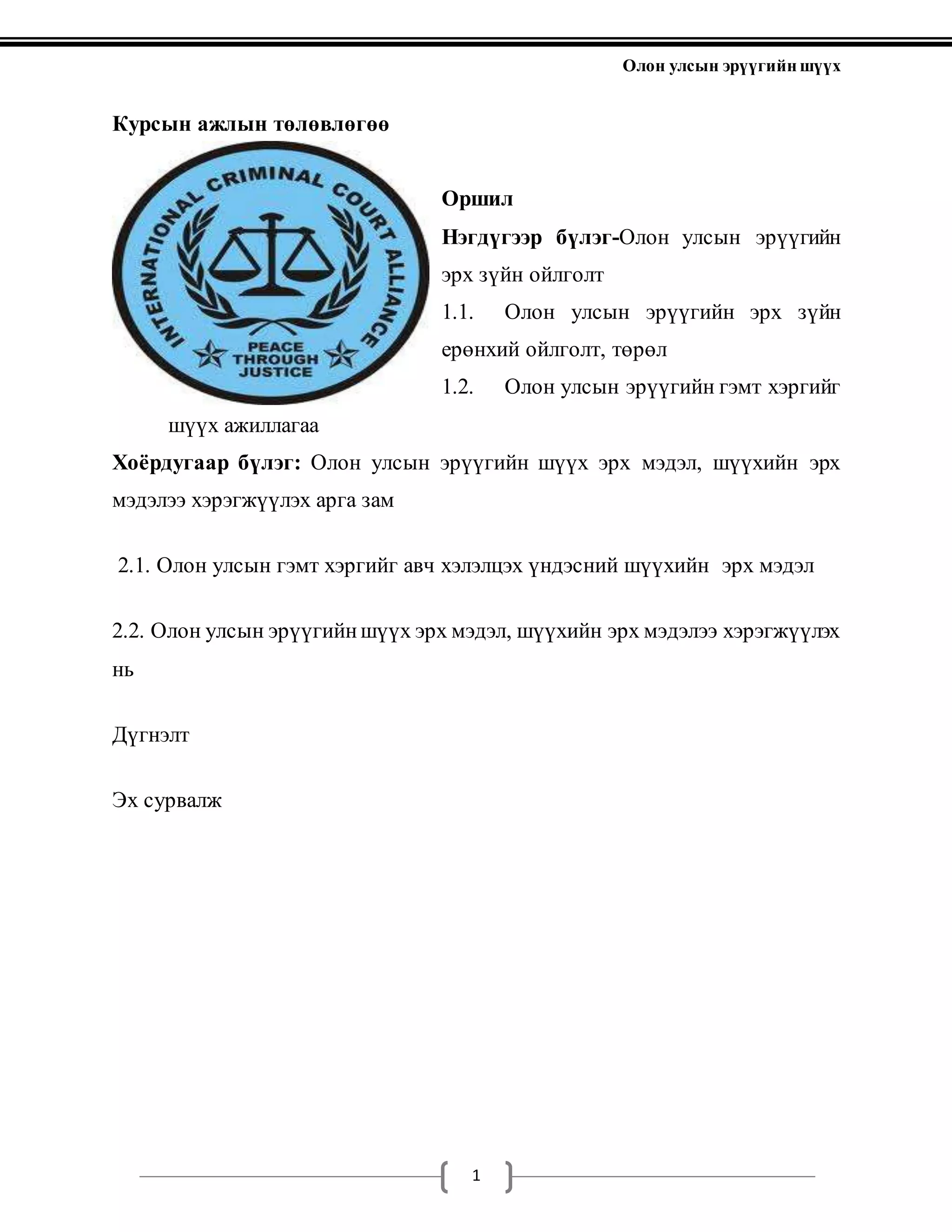 Mongolin tur erh zuin tuuh lekts.unenchimeg Similar to олон улсын эрүүгийн шүүх