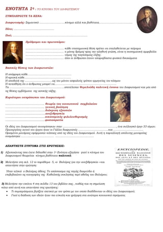 ΕΝΟΤΗΤΑ 1η :ΤΟ ΚΙΝΗΜΑ ΤΟΥ ΔΙΑΦΩΤΙΣΜΟΥ