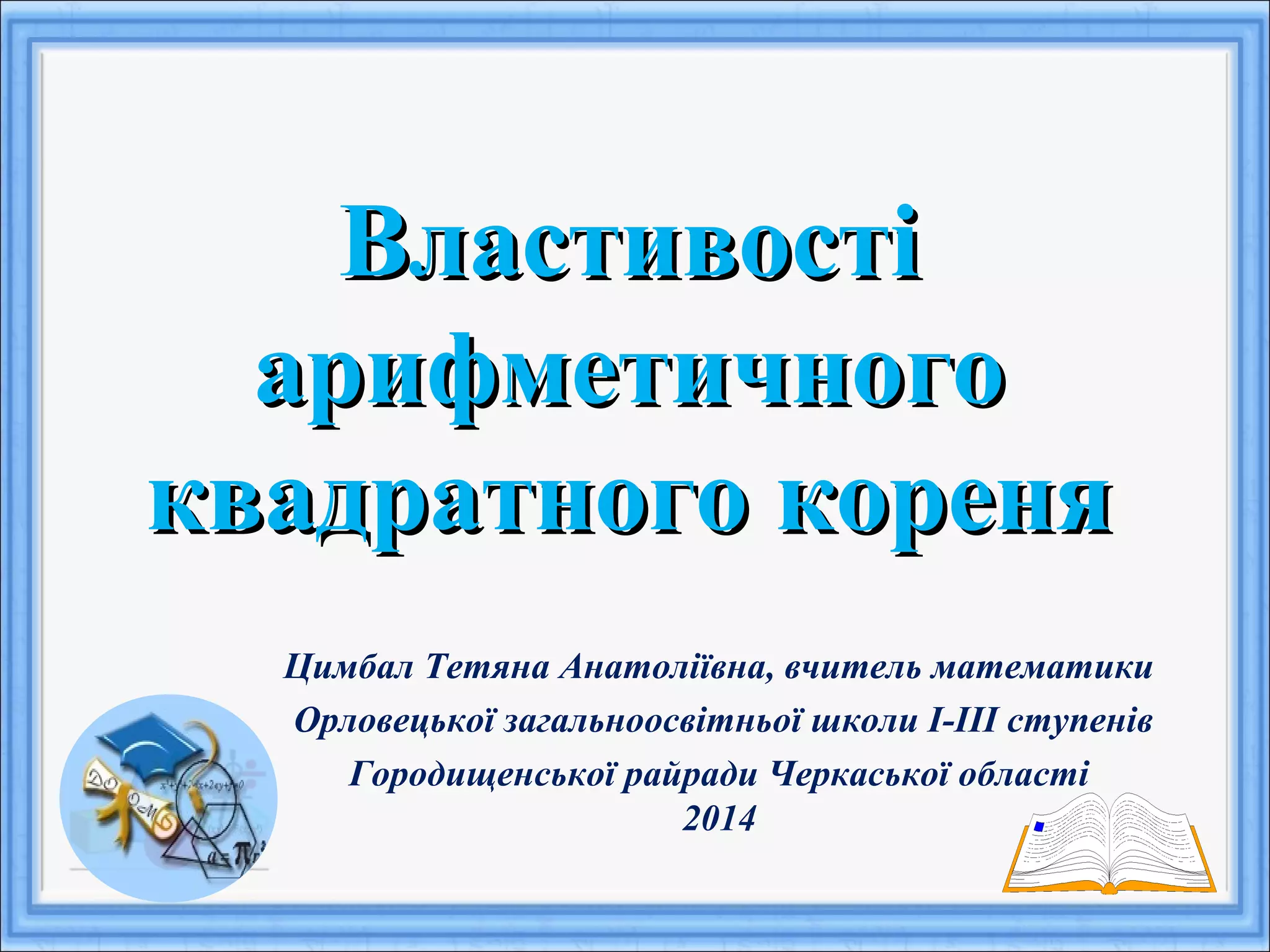 Ресурс призначений для проведення уроку алгебри у 8 класі з теми «Властивості арифметичного квадратного кореня». Навчальний матеріал відповідає діючий програми: Міністерство освіти і науки України. Математика. 8кл. Програма для загальноосвітніх навчальних закладів. – К.: “Перун”, 2005. Ресурс може бути використано і при викладанні предмета у класах із поглибленим вивченням математики.