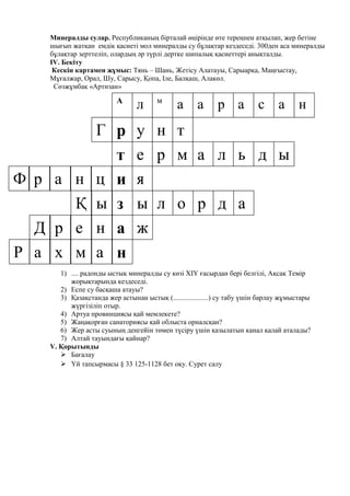 Көрнекті құралдар: Қазақстан физикалық картасы, атлас, Электронды оқулық, слайд