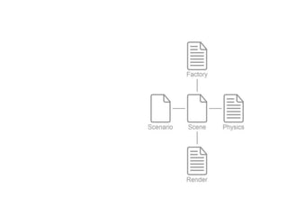 Документ обсуждает принципы разработки игр с фокусом на малый вес и высокую работоспособность. В нем упоминаются концепции объектно-ориентированного программирования и переиспользования игровых механик. Также приведены ссылки на ресурсы и лекции для дальнейшего изучения.