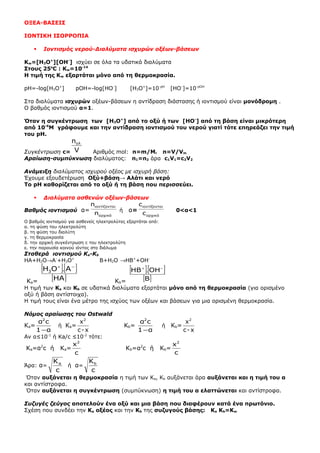 Η τιμή της Κw εξαρτάται μόνο από τη θερμοκρασία.