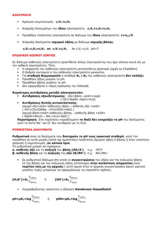 Σε διάλυμα ασθενούς ηλεκτρολύτη προστίθεται άλλος ηλεκτρολύτης που έχει κάποιο κοινό ιόν με