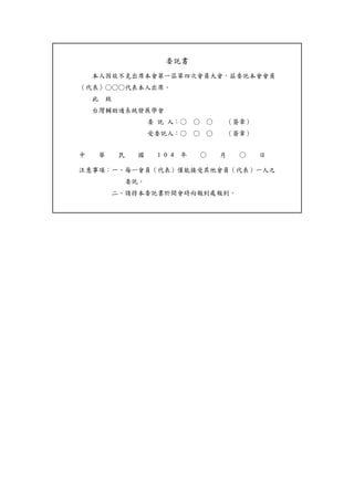 會員大會出席委託書