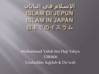 Dokumen ini membincangkan sejarah dan perkembangan Islam di Jepun, termasuk hubungan awal antara Muslim dan Jepun sejak abad ke-14. Terdapat pelbagai cabaran yang dihadapi dalam penyebaran Islam di Jepun, seperti kejahilan, salah faham, dan penolakan daripada masyarakat tempatan. Walaupun jumlah Muslim di Jepun rendah, terdapat harapan untuk penyebaran Islam yang lebih luas di negara tersebut.
