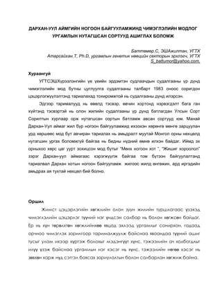 Дархан-Уул аймгийн ногоон байгууламжинд чимэглэлийн модлог ургамлын нутагшсан сортууд ашиглах боломж /Баттөмөр.С/