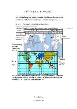1. α) Μελετώντας τον παρακάτω χάρτη γράψτε τι ώρα θα έχουν: