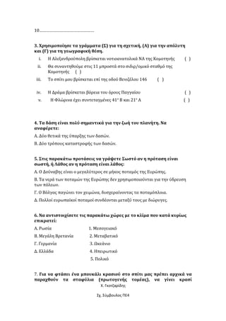 2. Παρατηρώντας το χάρτη να αντιστοιχίσεις στους αριθμούς τα