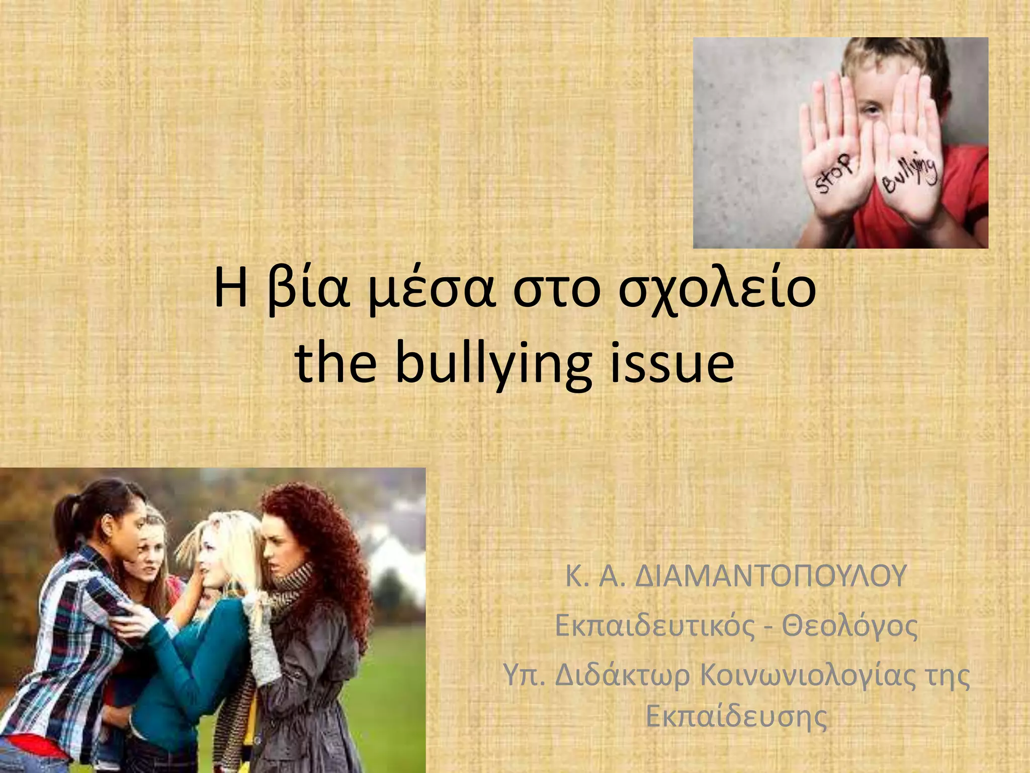 •Η αντιμετώπιση του bullying είναι μια πολύ δύσκολη