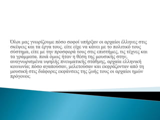 μανθάνοντες». Η μουσική για τους αρχαίους Έλληνες εθεωρείτο ως το