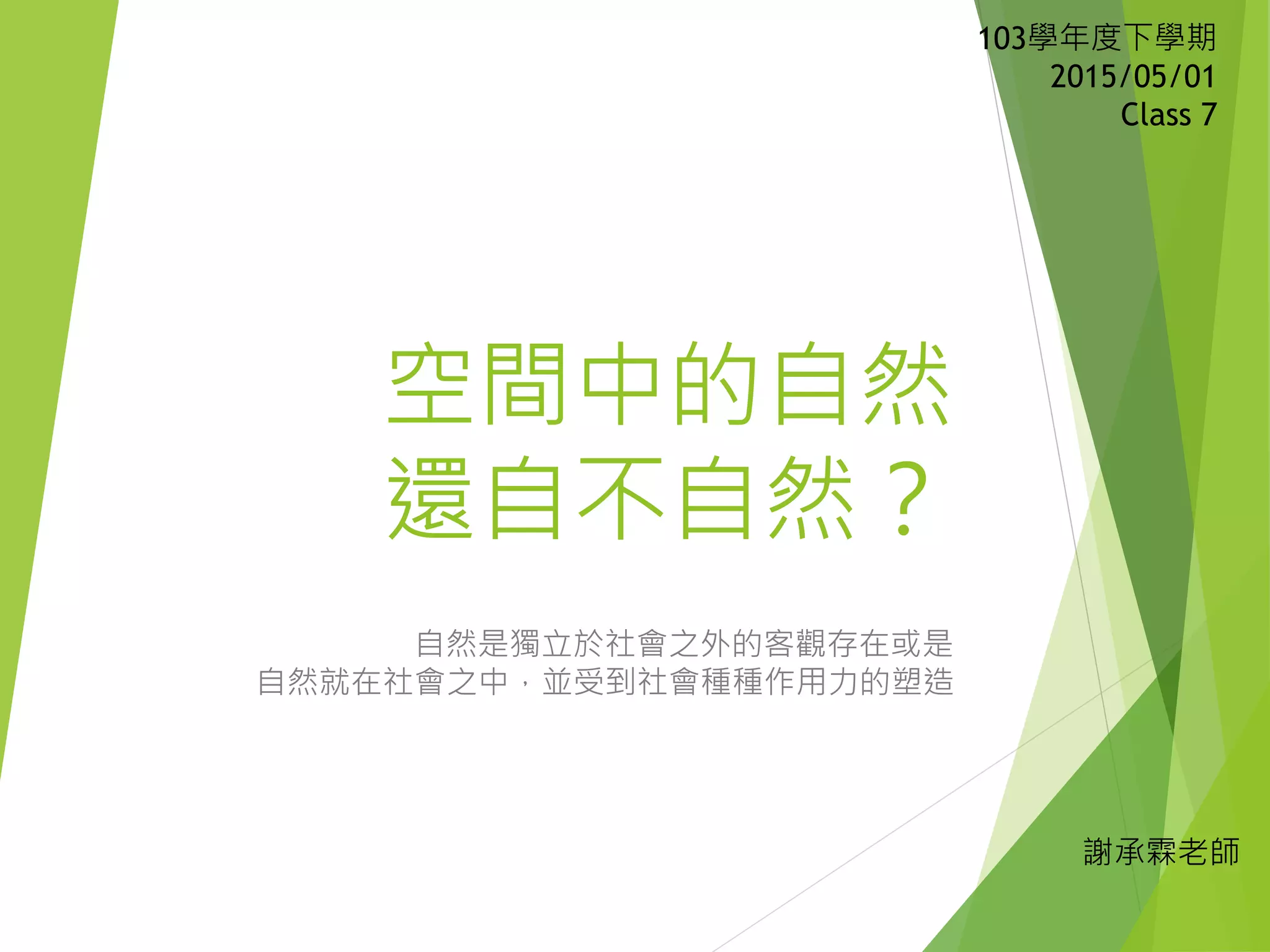 文档探讨了自然的定义及其与社会的关系,强调人类活动对自然的深刻影响。提出了需超越传统对自然与社会的二元分割,倡导政治生态学的视角来整合生态问题与社会、政治及经济过程。最终强调,以人类构造的方式,重新思考自然在当代社会中的意义与角色。