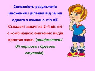 залежність результатів множення і ділення від зміни одного з компонентів дії