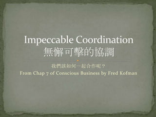 本章探讨如何在工作中建立有效的合作文化,强调承诺的重要性及其对信任和效率的影响。提出清晰的请求与承诺、有效的抱怨和道歉程序,帮助团队成员实现责任与协调。领导者需以身作则,鼓励明确的沟通与相互支持,以构建尊重和信任的工作环境。