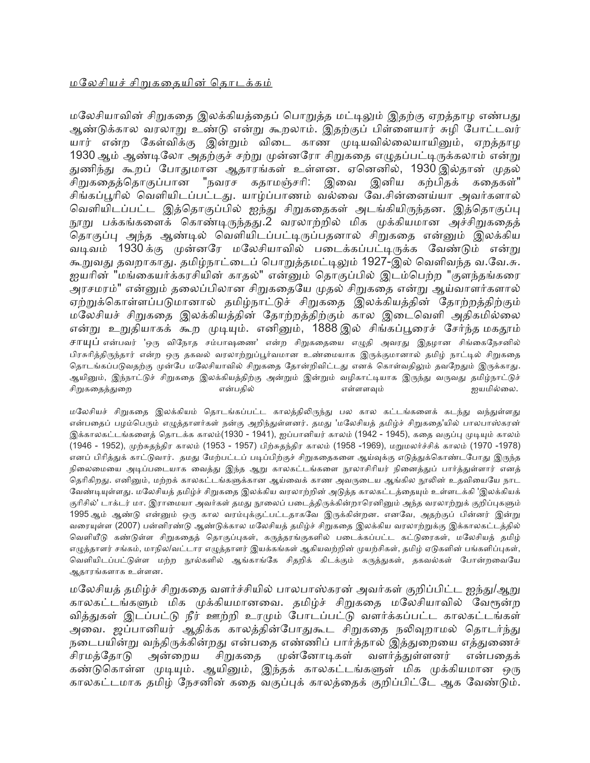 மலேசியச் சிறுகதையின் தொடக்கம்