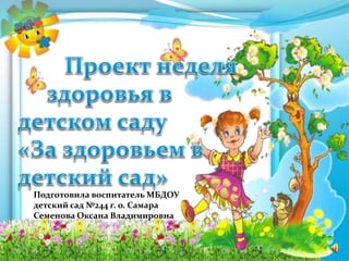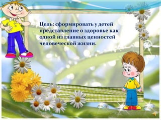 Документ описывает план мероприятий по формированию у детей представления о здоровье в детском саду, включая разработку системы работы к 'неделе здоровья' и различные активности для детей и родителей. Основные направления работы включают занятия по основам здорового образа жизни, гигиене, охране здоровья и физической активности. В документе также указаны цели и форматы взаимодействия с педагогами и родителями, включая выставки, конкурсы, консультации и театрализованные представления.