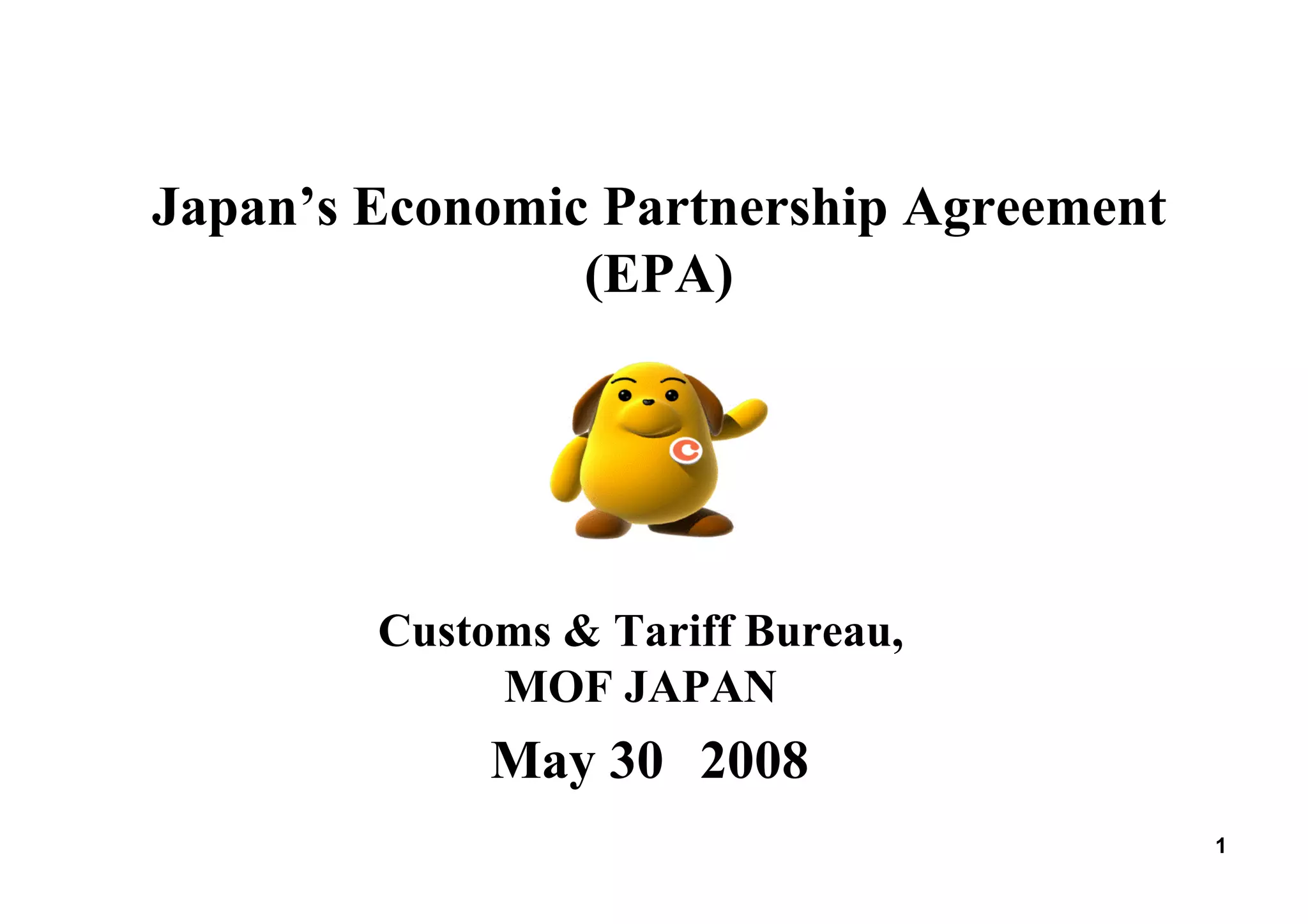 This document provides an overview of Japan's economic partnership agreements (EPAs). It outlines Japan's EPA negotiations from 2002-2008, including agreements that have entered into force and those still under negotiation. Key criteria for identifying potential EPA partners include creating an environment beneficial to Japan's economic interests and the feasibility of an agreement. The document also discusses Japan's goals of expanding EPA coverage to include major markets like the US and EU in the future. Currently EPAs cover around 15% of Japan's total trade, with a goal of increasing that to over 25% by 2010.
