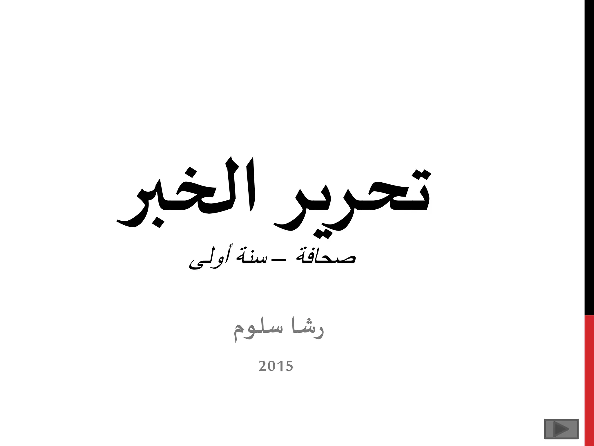 الخبر هو تقرير يهدف إلى نقل الوقائع بصفتها صادقة أو كاذبة، ويعتبر جزءاً أساسياً من الصحافة. يتضمن الخبر عناصر مثل العنوان، المقدمة، المتن، والخاتمة، ويعتمد على الدقة والموضوعية. يُقسم الخبر إلى نوعين رئيسيين: البسيط الذي ينقل واقعة واحدة، والمركب الذي ينقل أكثر من واقعة ويربطها.